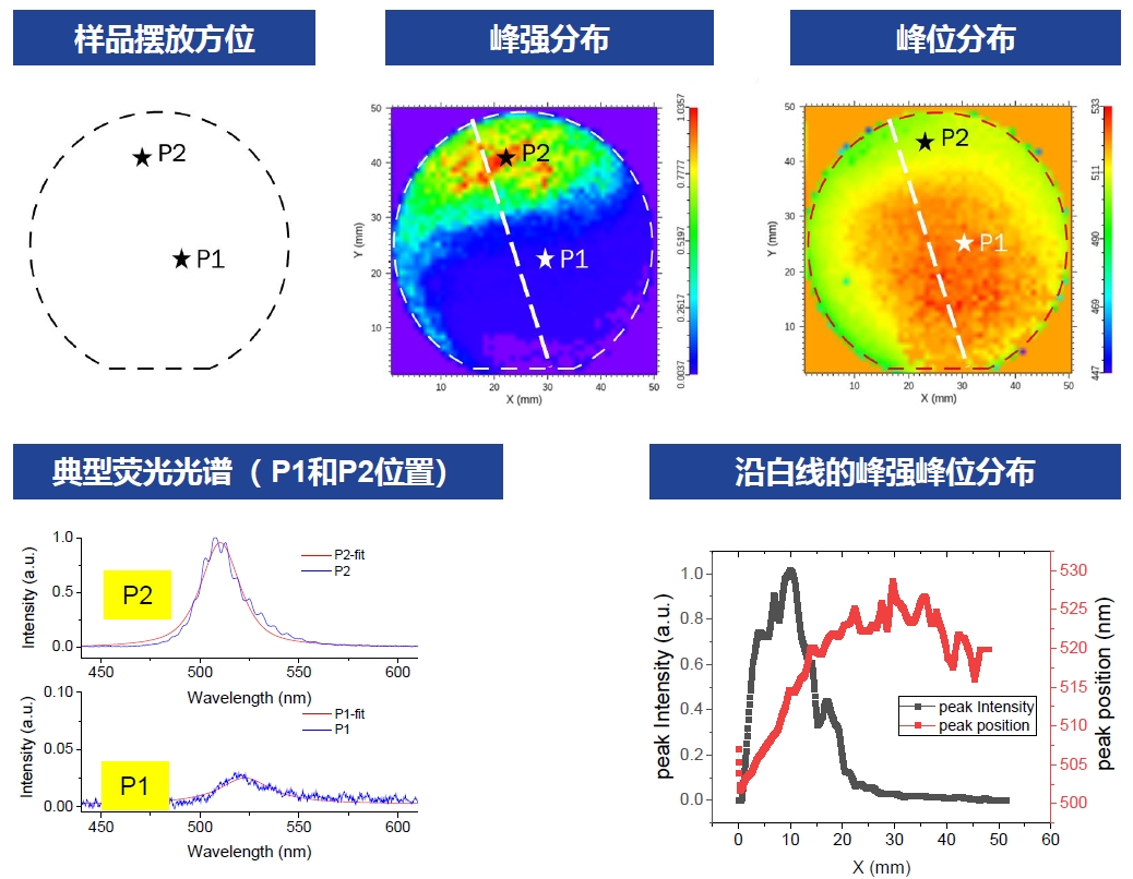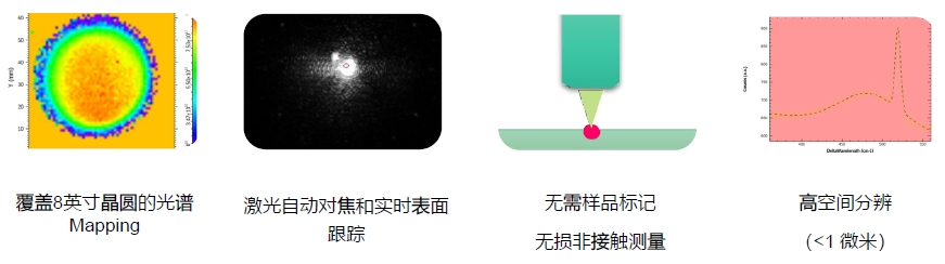 •可对光谱峰位、峰高、半高宽等进行拟合。 •可计算荧光寿命、薄膜厚度、翘曲度等。