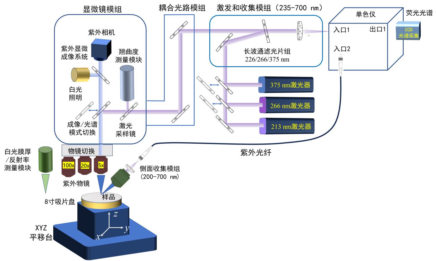 5X紫外物镜,波长范围200-700 nm。应用于213 nm、266nm的紫外激发和侧面收集实现AlGaN紫外荧光的测量 |