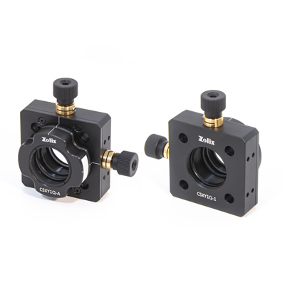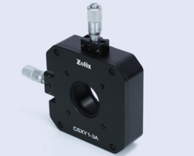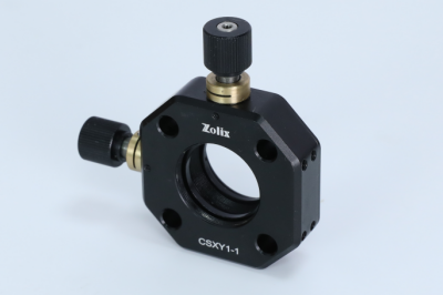 ZOLIX提供的 XY位移调整架兼容30mm笼式系统,通过集成磁性快拆安装板可实现光学元件的快速更换。该调整架采用双M5×0.25调节器驱动,提供垂直方向±1mm行程,位移精度0.25mm/转。其中心配置SM1标准螺纹孔(预装SM1卡环),兼容直径25.4mm的光学元件。调整架正面刻有垂直/水平双轴刻度线,辅助安装定位;快拆板侧面设有元件标记区,便于标识光学元件。CSXY1Q-1为纯笼式结构(底部无接杆接口),笼杆连接通孔均配备侧向锁紧螺丝(需使用2mm六角扳手操作),确保笼板稳固安装;其磁性快拆安装板支持单独采购,便于系统扩展或配件替换。