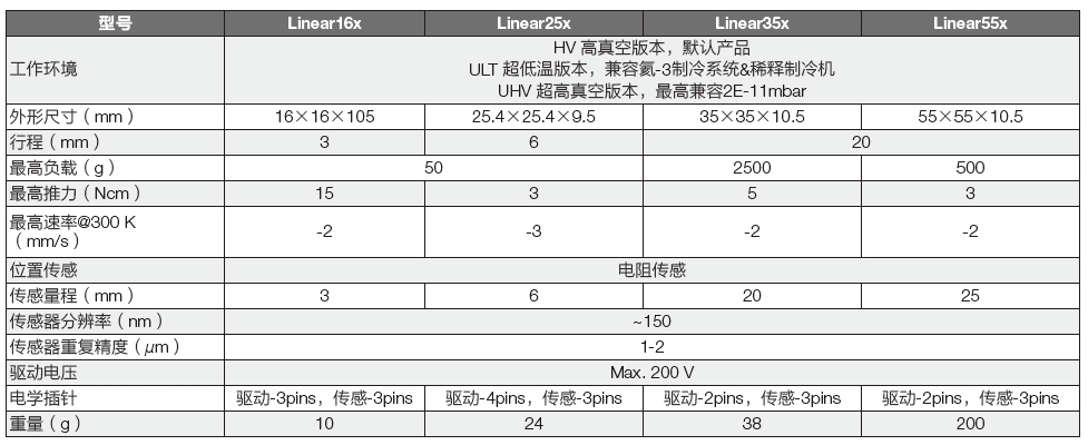 • 闭环控制,内置位置传感器, 最小位置分辨率 0.1 μm