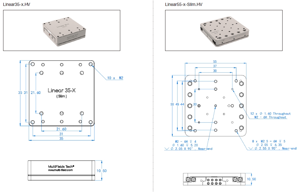 紧凑设计,提供16×16mm,25×25mm,35×35mm,55×55mm多种尺寸版本 适用于超高真空&超低温兼容:2E-11mbar&30mk
