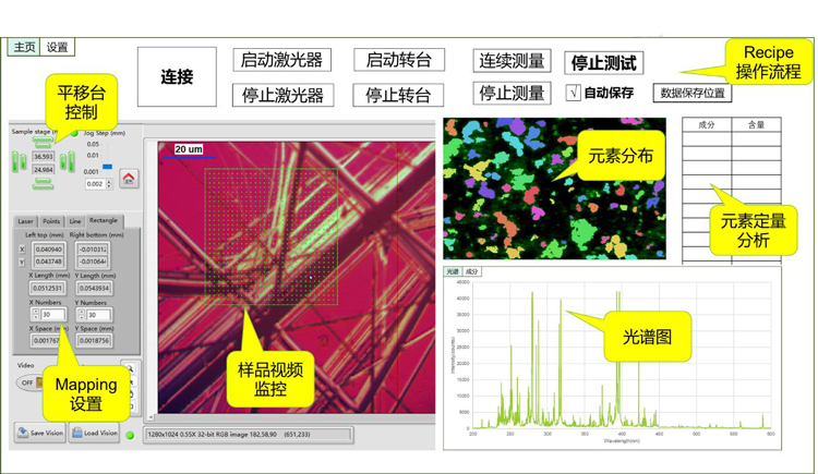 软件界面突出Mapping和定量元素分析的特色,实时显示元素Mapping分布图。