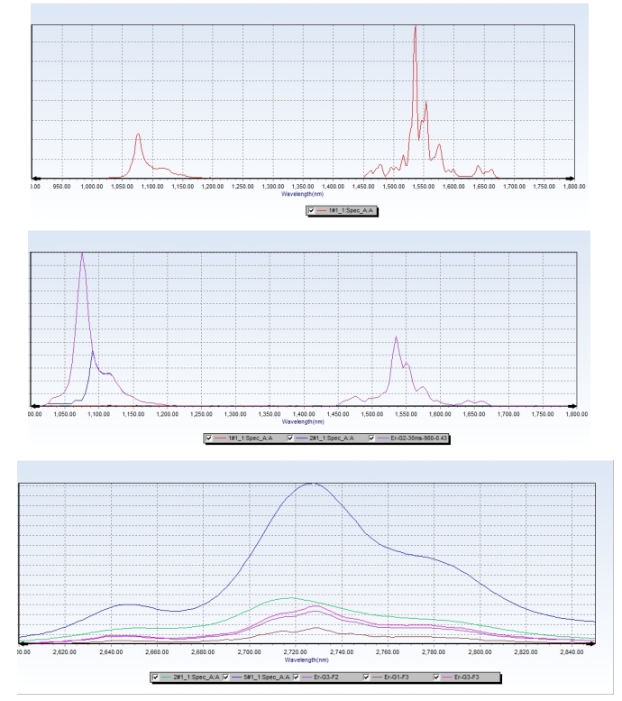配置808nm,980nm激光器掺Er离子样品发射在1550nm,2730nm左右。