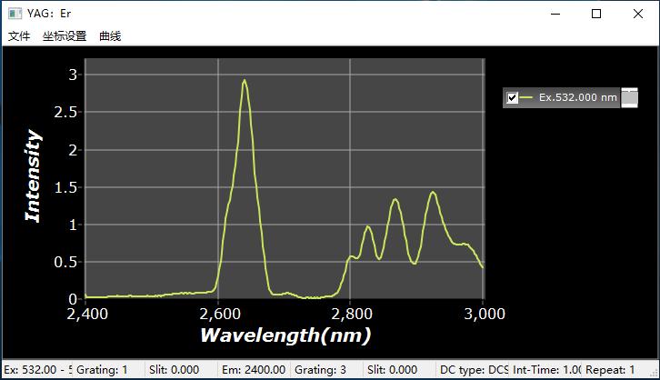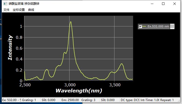 采用快盈lV中红外荧光测试系统,系统组成:980nm激光器、Omni-λ5015i影像校正型红外单色仪、红外镀金反射式样品室、液氮制冷型InSb探测器(光谱响应范围1-5.5um)。
