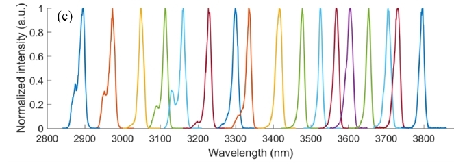 2、PPLN晶体中通过温度调谐自由差频产生的连续波2.9-3.8μm 随机激光光谱测量[2]
