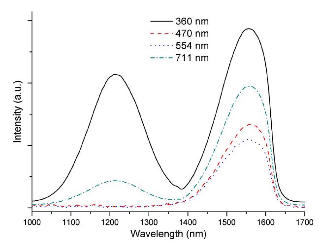 300K不同激发波长下Bi:CsI 晶体的近红外发光光谱