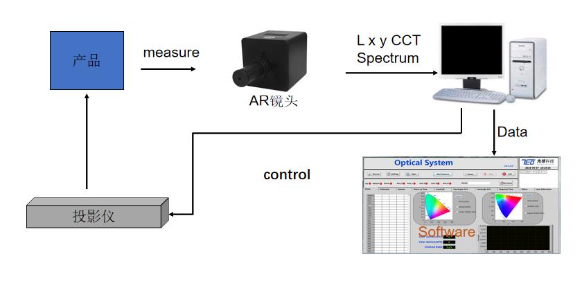 亮度分布均匀性、折光(反射畸变)、亮度、中心色坐标偏差、色坐标均匀性、亮度系数(增益)、FOV视角、虚像距离、虚像对比度等测试