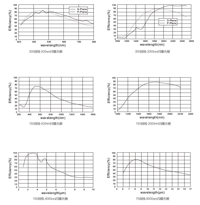 光栅规格型号表2:经济型光栅(本系列适用于Omni-λ300i、Omni-λ500i、Omni-λ750i等系列光谱仪)