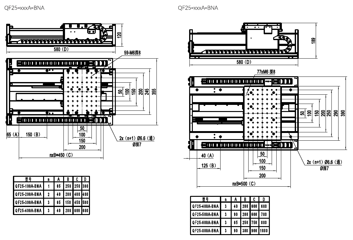 QF 系列代码: QF:单轴空气轴承类滑台 QFD:XY组合空气轴承类滑台 QFH:龙门组合空气轴承类滑台 |