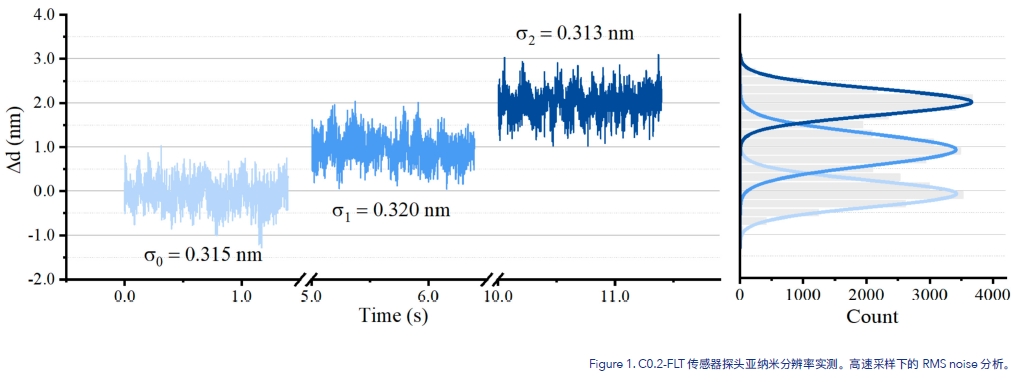 C0.2-FLT 传感器搭配 Faraday.03 监视器实测数据,运动步长 1 nm