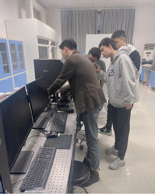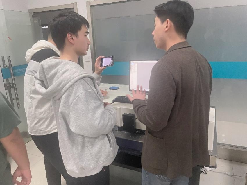 从戴宏老师处出来,我们的工程师又来到了机械学院。机械学院方兴老师在哈尔滨工业大学读本科及在上海交大读博期间一直都在使用快盈lV的设备,也是我们多年的老朋友。方老师毕业后到衢州学院任职,从2020年开始相继从快盈lV采购了太阳光模拟器、IPCE光电测试系统、OmniFluo990系统、RTS-mini拉曼系统等设备。近期方老师组新来了一批学生,对仪器不是很熟悉。借此回访机会,张工为组里的新生,针对方老师所购买的所有系统一一进行的详细的培训,并针对学生测试遇到的问题进行了耐心的解答。