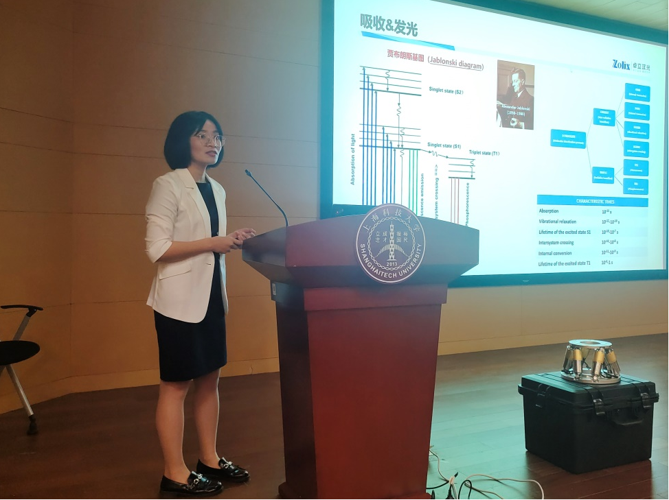 上海科技大学 刘小井老师做“高动能速度成像谱仪研制及其应用”报告,为座观众讲解自制VMI系统,同时刘老师介绍了快盈lV代理的Photek产品如何服务其特殊应用,报告由浅入深,生动丰富