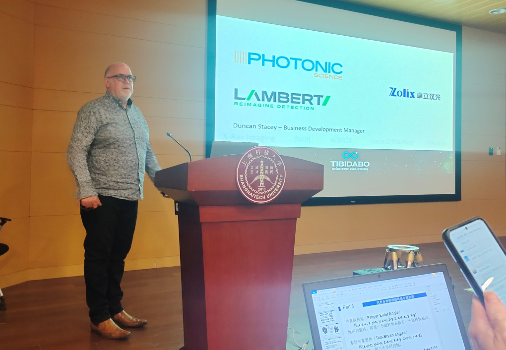 Photonic Science公司的Duncan Stacey 经理为我们介绍PSEL成像类产品及劳厄定向系统报告。针对成像类产品,Duncan为我们主要分享了短波红外相机和X射线相机的相关产品和应用,并对劳厄定向系统的设备原理和结构做了详细介绍,分享应用案例。此外Duncan 还就Lambert Instruments公司的产品做简单介绍,包含荧光寿命成像显微镜、增强型高速相机及纳米级时间分辨相机(ICMOS)。报告中也介绍了很有特色的SWIR短波红外相机,为我们展示了该类相机在生物弱光成像,夜视等各类方面的广泛用途。