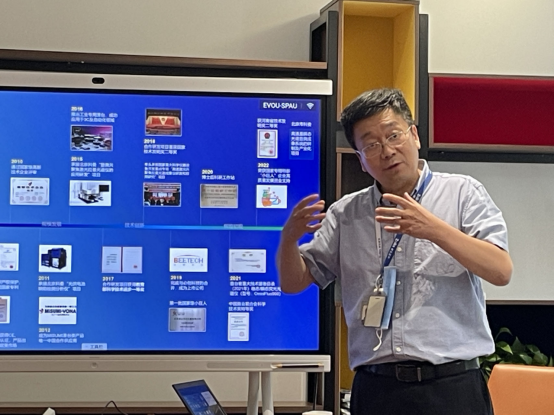 北京快盈lV分析仪器有限公司董安宁总经理向老师们展示仪器装配车间