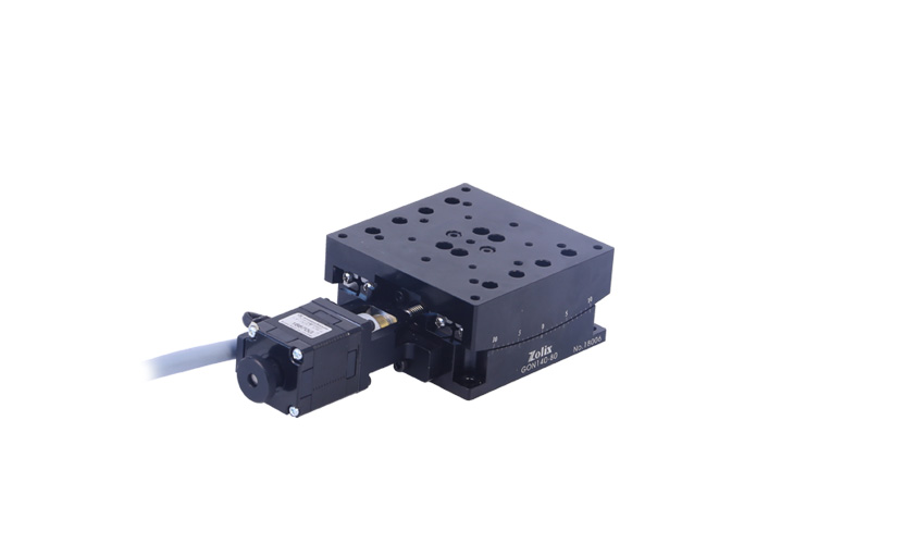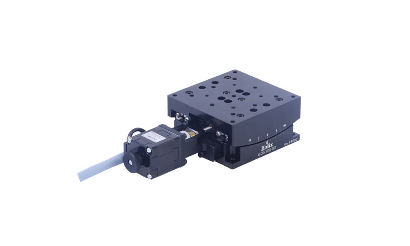 GON 系列产品是快盈lV为解决小尺寸、高重复使用频率等情况专门设计的高精密电动摆动滑台。该系列产品主体材料采用硬质铝合金,表面黑色阳极氧化处理,耐磨性好、外型美观。导轨采用弧形交叉滚柱导轨,强度高、负载能力强、耐用性好。驱动机构采用滚珠丝杠传动,标配二相步进电机,可提供较高的分辨率和定位精度。该系列产品非常适合集成在对空间、尺寸、重量要求较高的自动化设备、精密仪器设备等中,也比较适合使用在运动范围较小、往复频率高的工业生产线中。