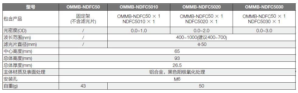 OMMB-NDFC50圆形渐变滤光片固定架说明: