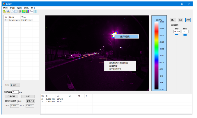 软件对视场内光源强度用伪彩色表示,可直观判断亮度强度的分布情况;