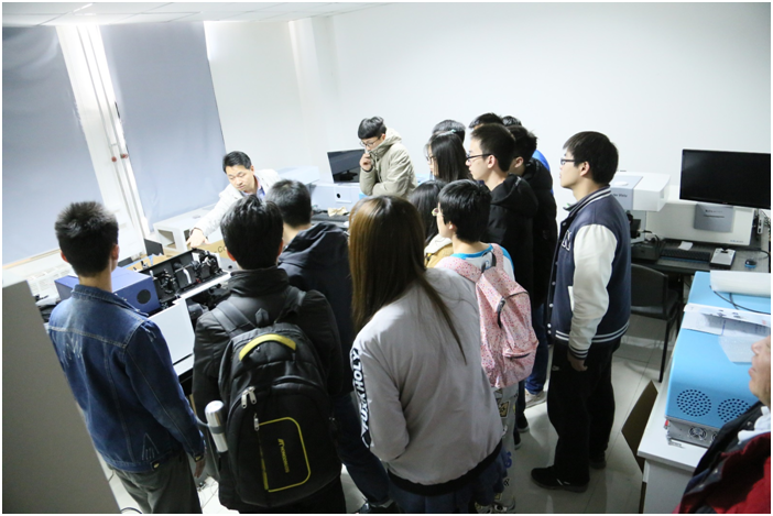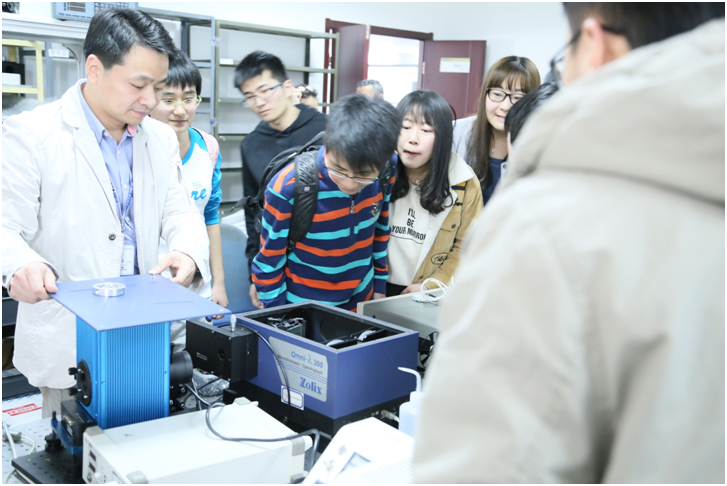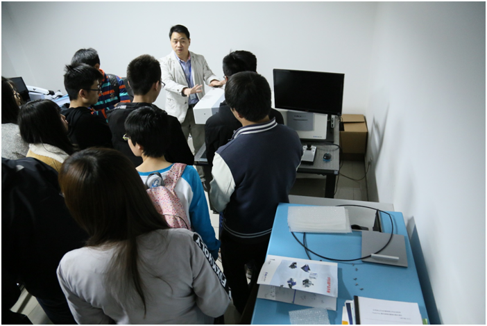 张恒总经理为学生介绍荧光和拉曼光谱实验室并为学生们展示了我司