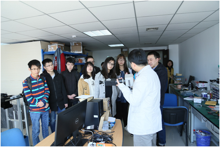 分析仪器事业部张恒总经理和供应部李远超工程师代表公司热烈欢迎了到访人大师生,并为学生们详细讲解了车间及实验室的相关设备及仪器开发的相关内容和应用技术知识。学生们表现了浓厚的兴趣,认真地听着讲解!