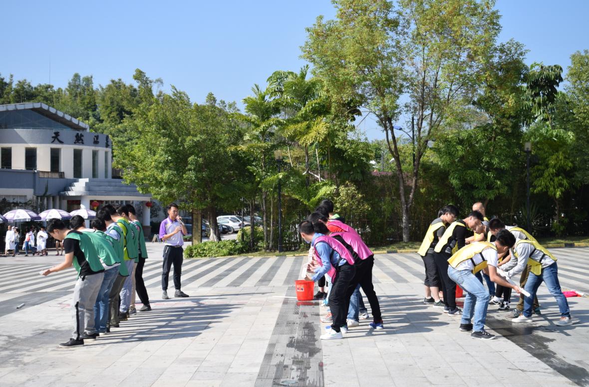 正式训练前,教练让大家进行了“1.2.3跟节奏”“桃花朵朵开”等氛围比较活跃的游戏,意在突破大家的隔阂,让大家彼此信任,为接下来的活动建立基础。而后在教练的指导下,随机分成三个小组在沙场点兵、呼吸的力量、南水北调等活动上进行了比拼。