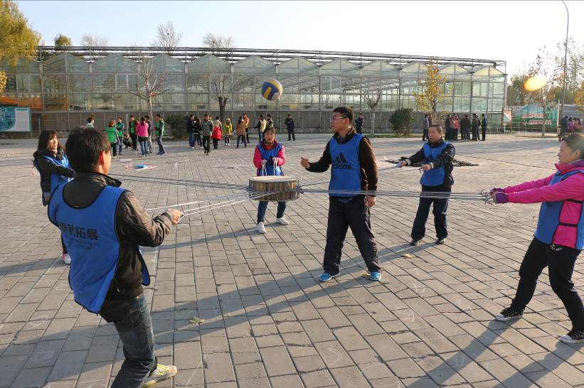 一日之计在于晨,补充营养后,接下来的活动就正式开始了,活动第一项:破冰起航:在规定的时间内完成各项任务:选队长、起队名、队训、队歌、队旗的制作; 自我介绍并展示才华,相互重新认识; 以小队为单位进行团队展示; 我们一共分为了三队,分别各自命名为:火蓝队、小苹果队和狼牙队。激情飞扬,活力四射的我们,开始体验接下来的各项活动,包括:急速60秒,穿越电网,断桥,孤岛求生,动感颠球,能量传输,不倒森林,动力火车,激情节拍等。