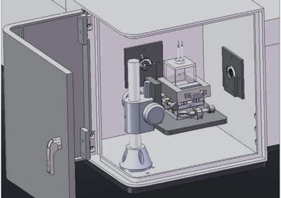 背电极气体密封样品台,探针位置固定,选通开关选择不同测量电池 |