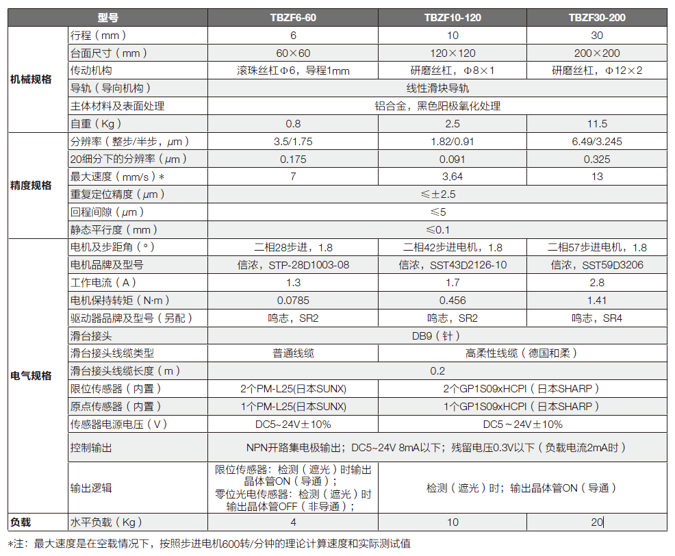 TBZF系列产品是快盈lV为解决小尺寸、高重复使用频率等情况专门设计的电动升降滑台。该系列产品主体材料采用硬质铝合金,表面黑色阳极氧化处理,耐磨性好、外型美观。导轨采用线性滑块,强度高、负载能力强、耐用性好,配合快盈lV特有的导轨面精密磨削技术,使该系列产品具有较高的运动精度。驱动机构采用研磨丝杠(1mm 或2mm 导程),丝杠螺母采用耐磨锡青铜,标配二相步进电机,可提供较高的分辨率和定位精度。