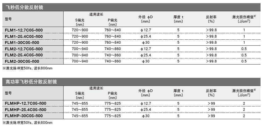 · 备有标准的FLM1,宽波长范围的FLM2,高激光损伤阈值的FLMHP三种类型。