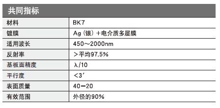 日本SIGMA KOKI镀银膜反射镜共同指标
