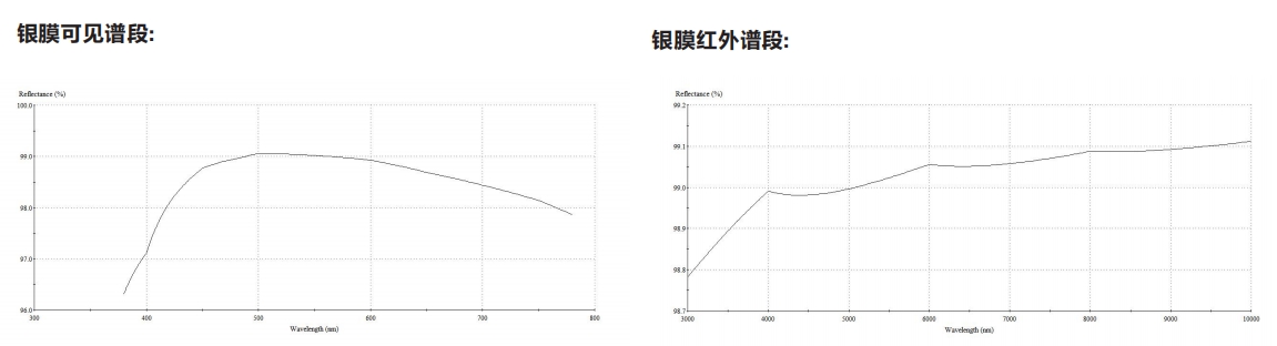 · 与铝膜反射镜相比,在可见光到红外波段可得到更高的反射率。