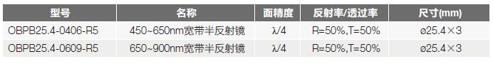 命名规则: OBPB直径-波长1波长2(取微米数)- Rx(反射率百分比代码)