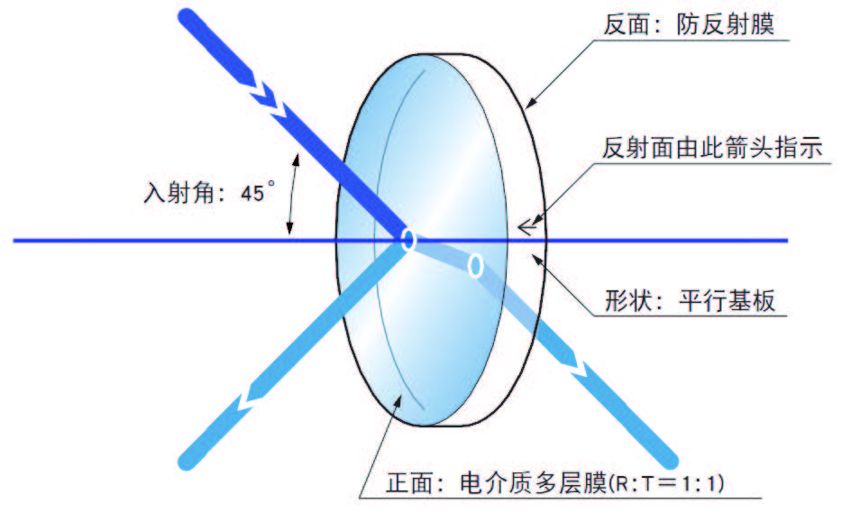 · 由于是平板型半反射镜,透过基板时产生的波长分散或色差很小,重量也可以减轻。