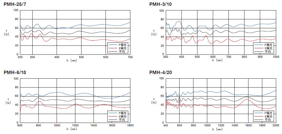 ?使用激光等的直线偏光时,反射率或透过率随偏光方向变化。如果要调整分束比为1:1时,请45°倾斜偏光方向或使用圆偏光。