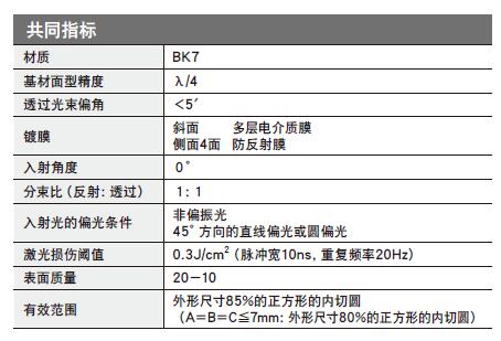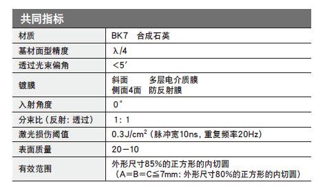 日本SIGMA KOKI紫外激光分束立方体共同指标