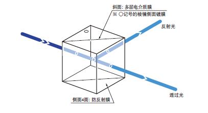 · 由于反射面为多层电介质膜和透明粘接剂,射入面和射出面有防反射薄膜,可以减小光量的损失,有效的使用入射光。
