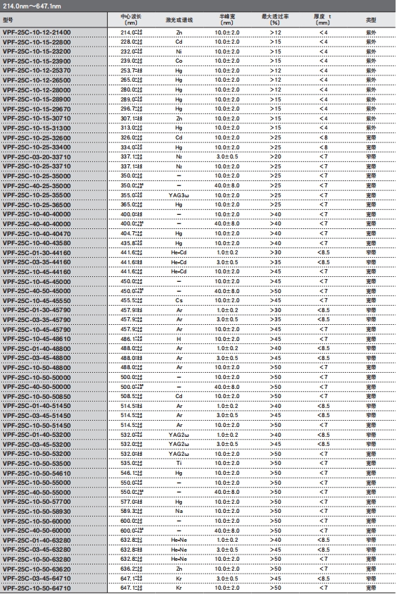 具有1nm到40nm的光谱宽度(半峰宽),只透过指定波长的滤光片。