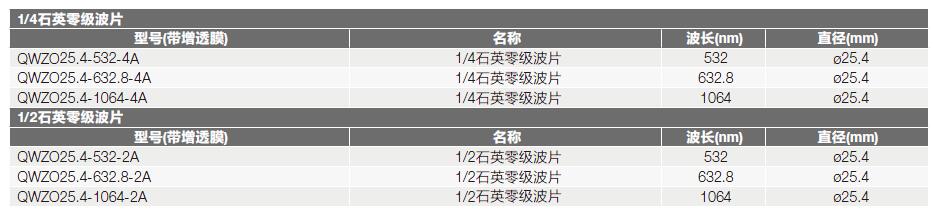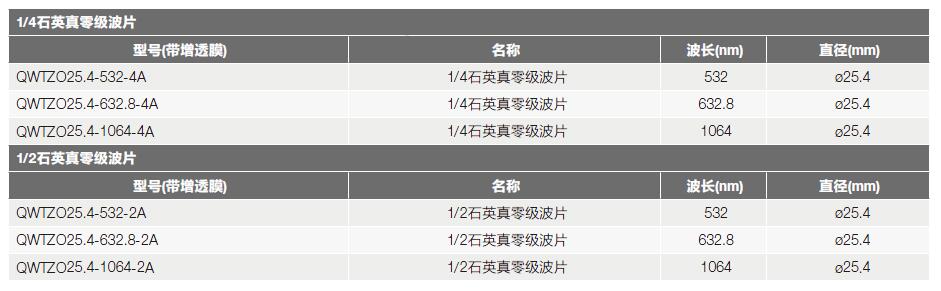 1. QWZO系列石英零级波片: