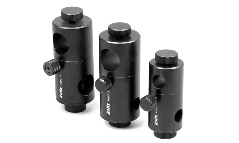 PHUC 系列万向杆架用于将多种直径的接杆按所需角度组合在一起,适用性强。两接杆可360°相对转动,精加工转轴提供精密柔顺的舒适调整。锁紧手轮可保证所调位置锁紧牢固。