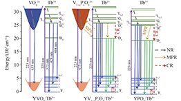镧系(Ln3+ )稀土发光材料具备优异的光物理特性,在照明、显示、安全防伪、辐射探测等领域具有广泛应用。Tb3+在VUV/ UV 光激发下可产生蓝、绿光,选择合适的基质并调节掺杂Tb3+ 浓度,有望在同一材料体系中实现从蓝光到绿光的系列调控。Tb3+发光调控对开发面向白光LED 的照明材料及光学防伪材料均有一定研究意义。 天津城建大学张守超副教授及其团队选择YVO4 与YPO4 作为基质,研究Tb3+ 在钒磷酸盐体系中的发光规律及基质组分对发光性能影响,可以深入理解此类发光材料的发光机制和性能优化途径,改善发光材料性能,从而更好地满足实际应用的需求。